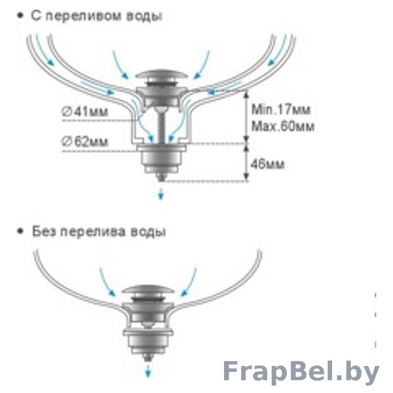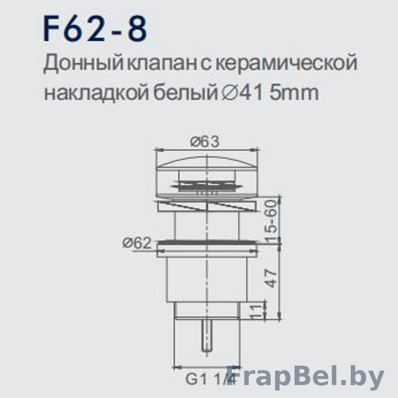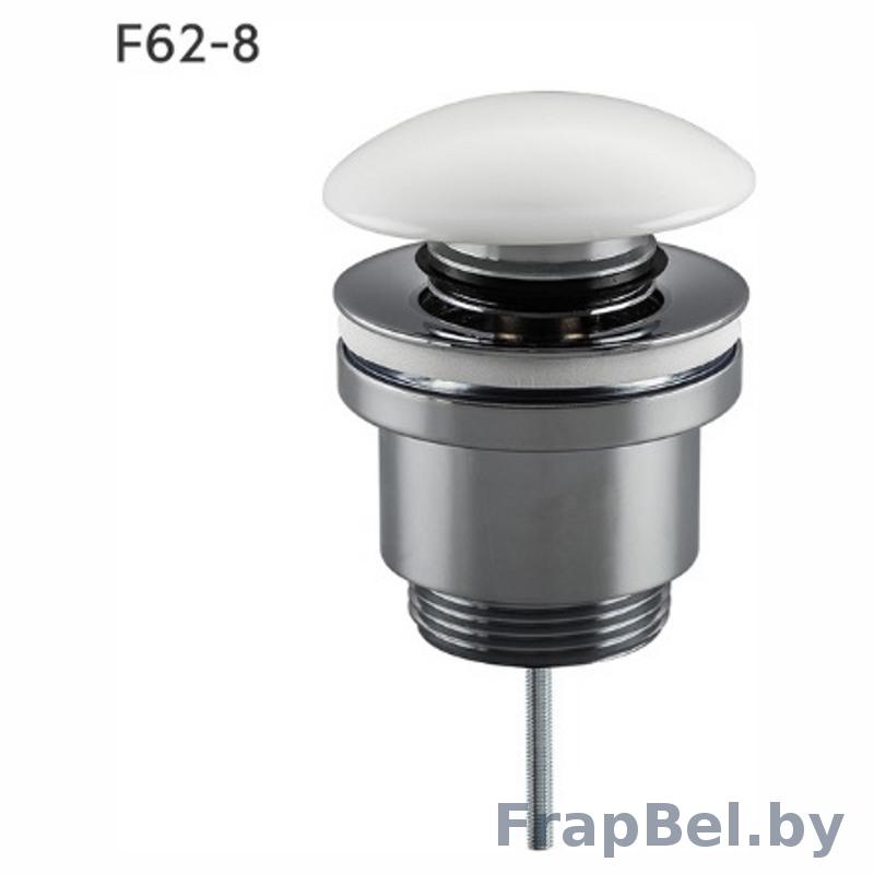 Донный клапан Frap F62-8 Донный клапан для умывальника, нажимной, верх белый. Универсальный, для раковин с переливом и без перелива. Цвет:хром+белый.