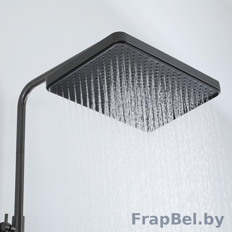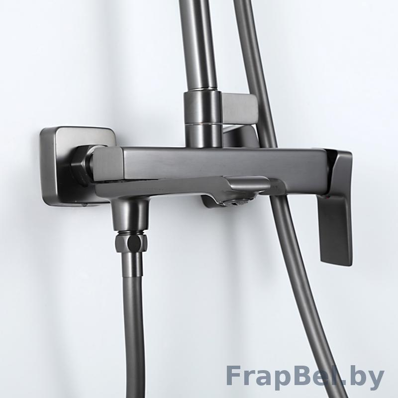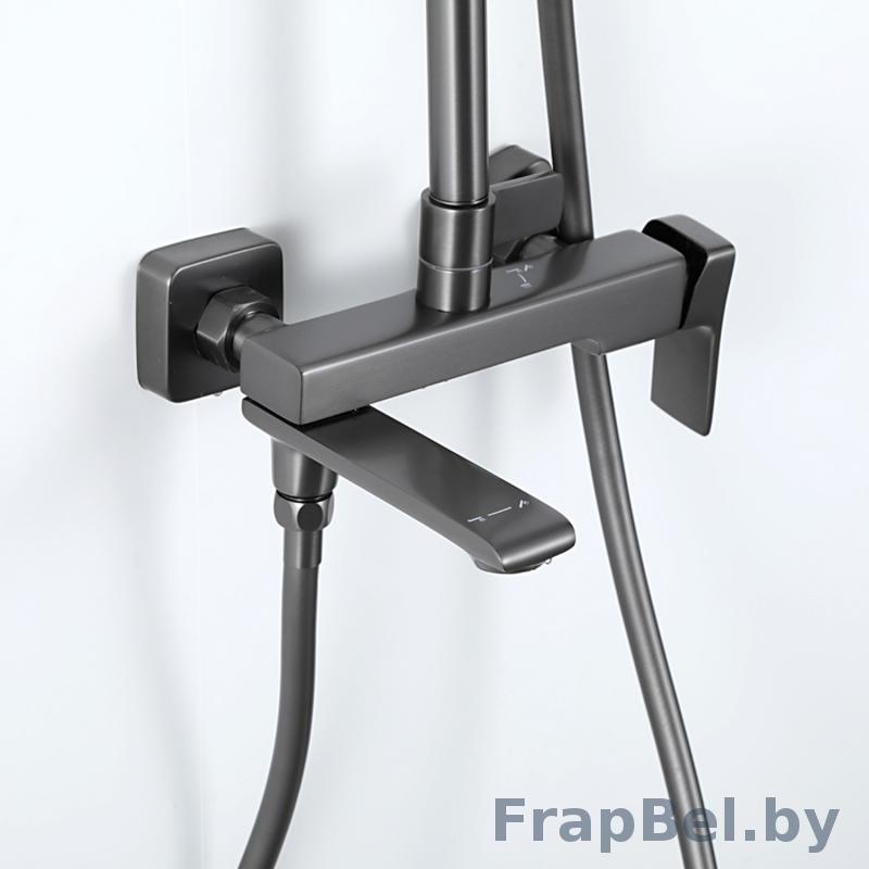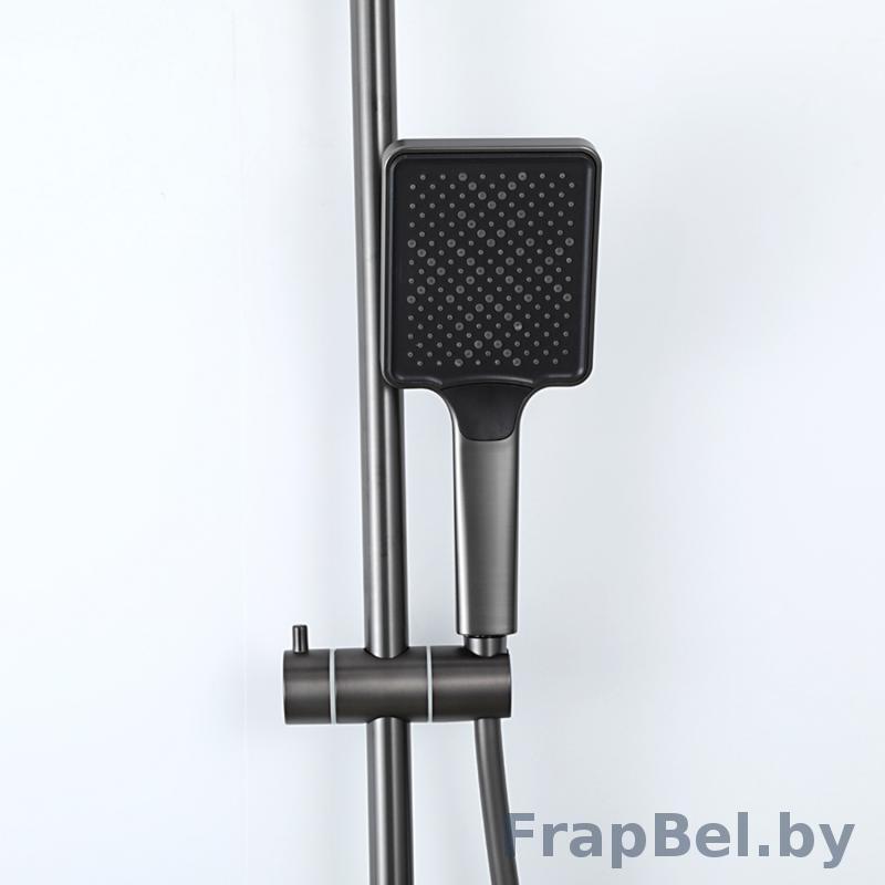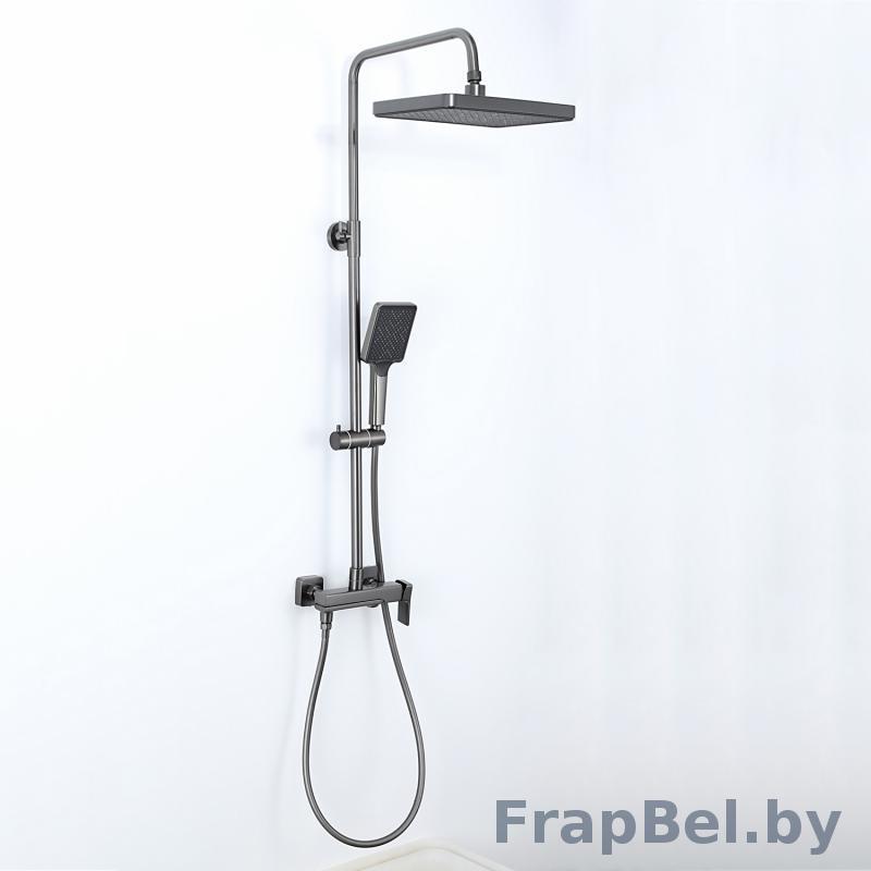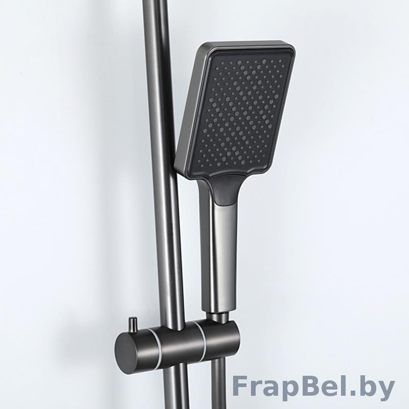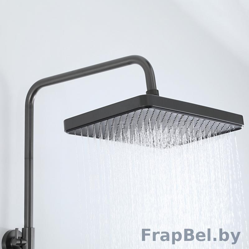 Душевая система Frap F2484-9 в цвете оружейная сталь. Имеет изящный прямоугольный верхний душ, изготовлена из латуни.