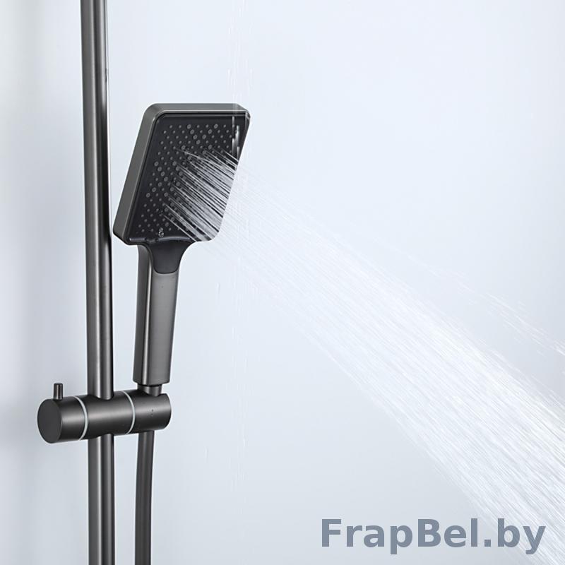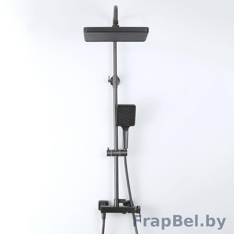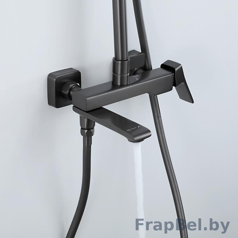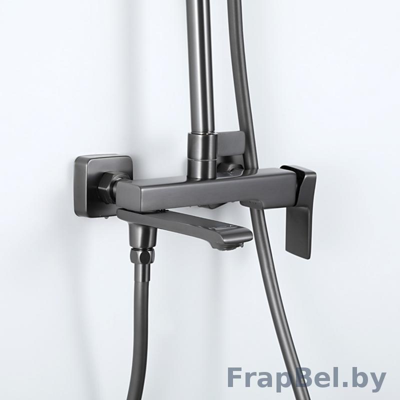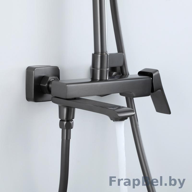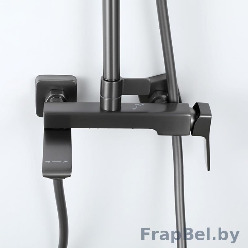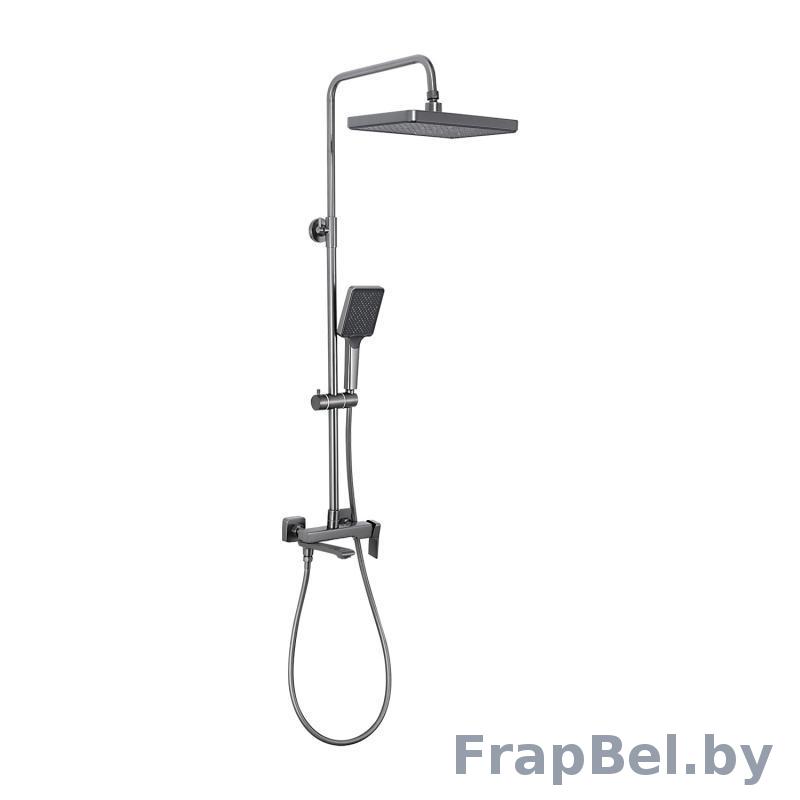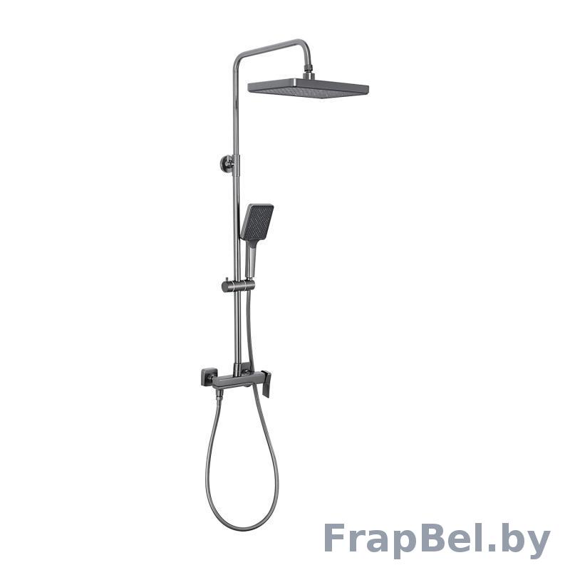Душевая система Frap F2484-9 в цвете оружейная сталь. Имеет изящный прямоугольный верхний душ, изготовлена из латуни.