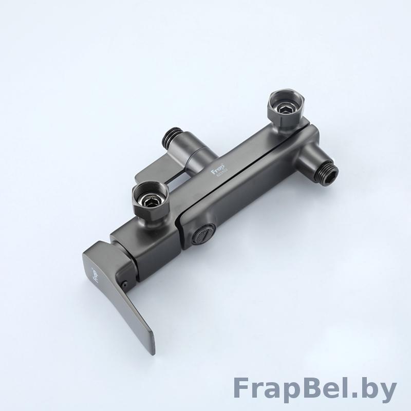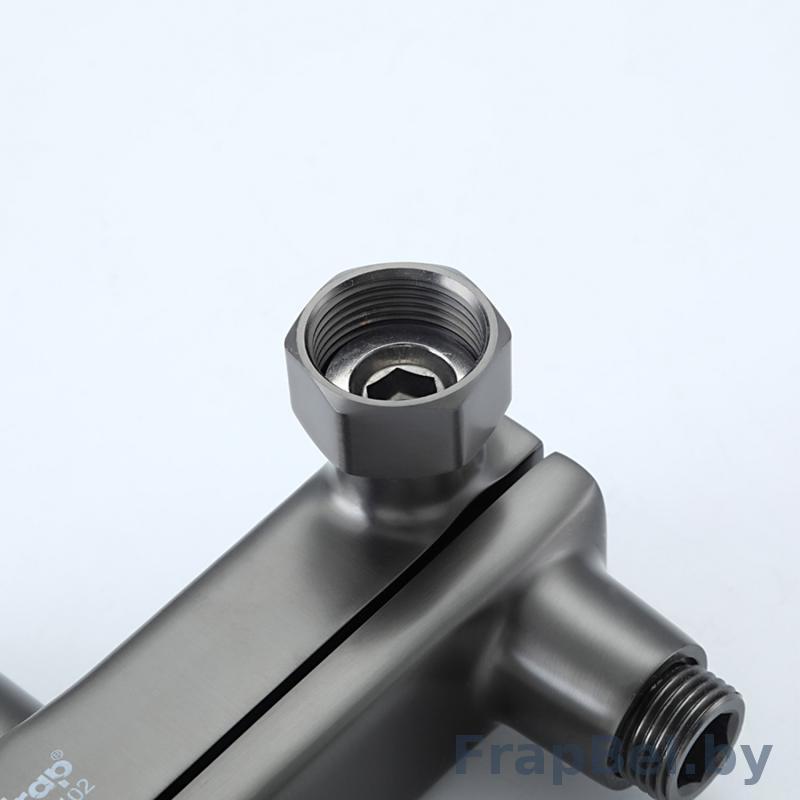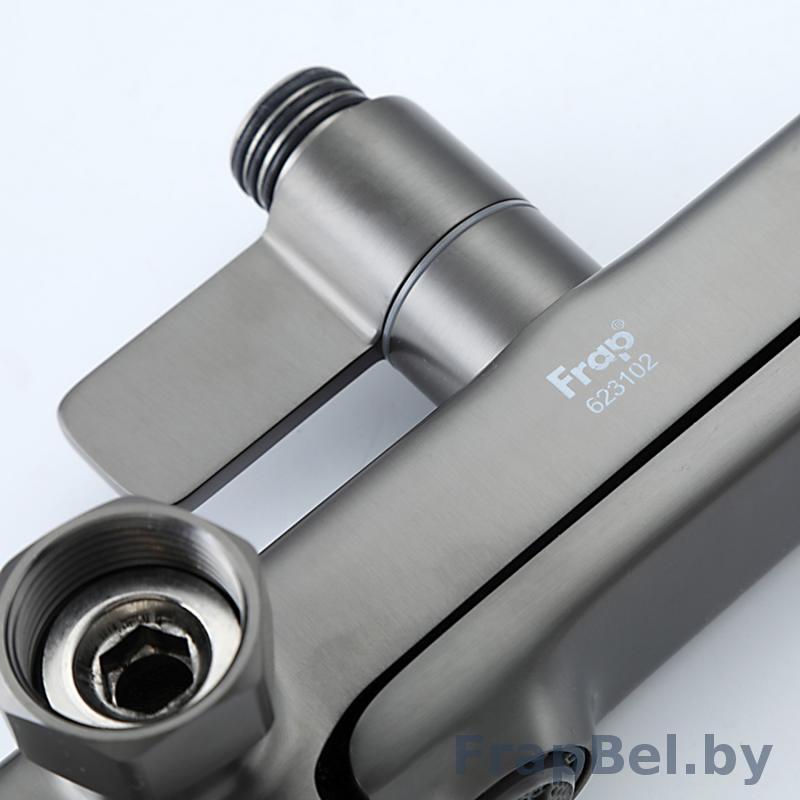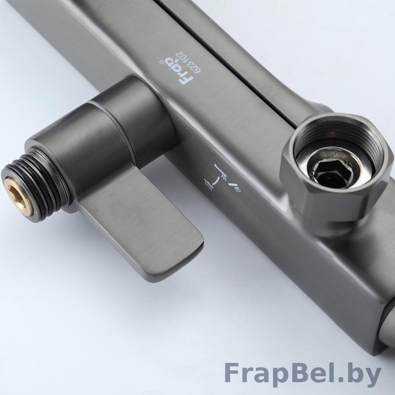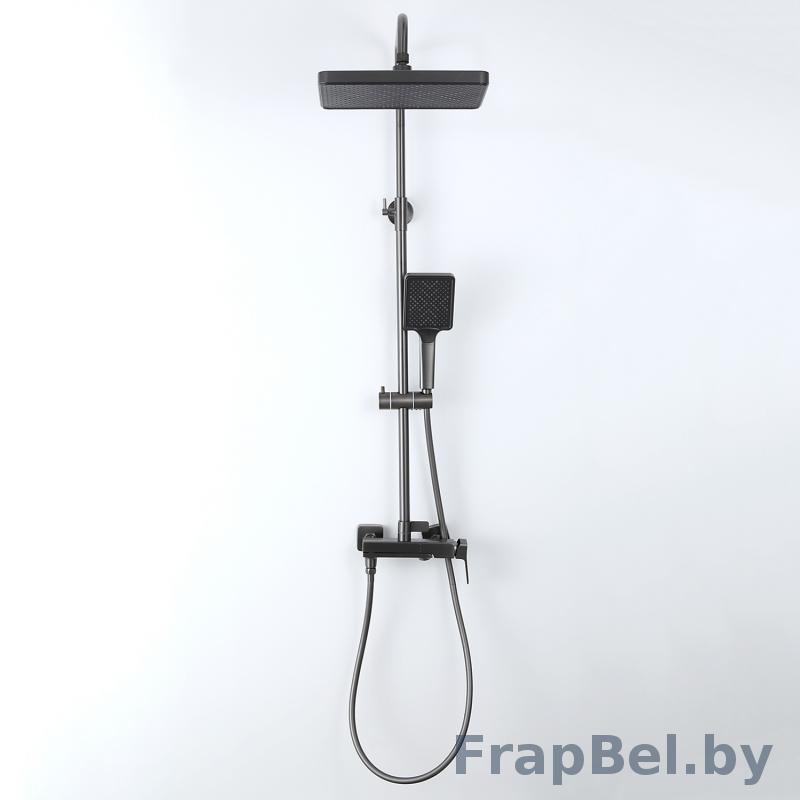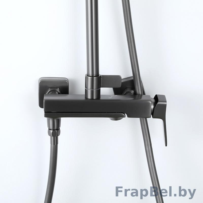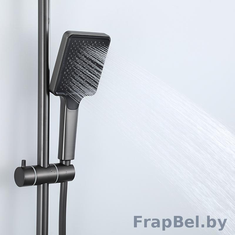 Душевая система Frap F2484-9 в цвете оружейная сталь. Имеет изящный прямоугольный верхний душ, изготовлена из латуни.