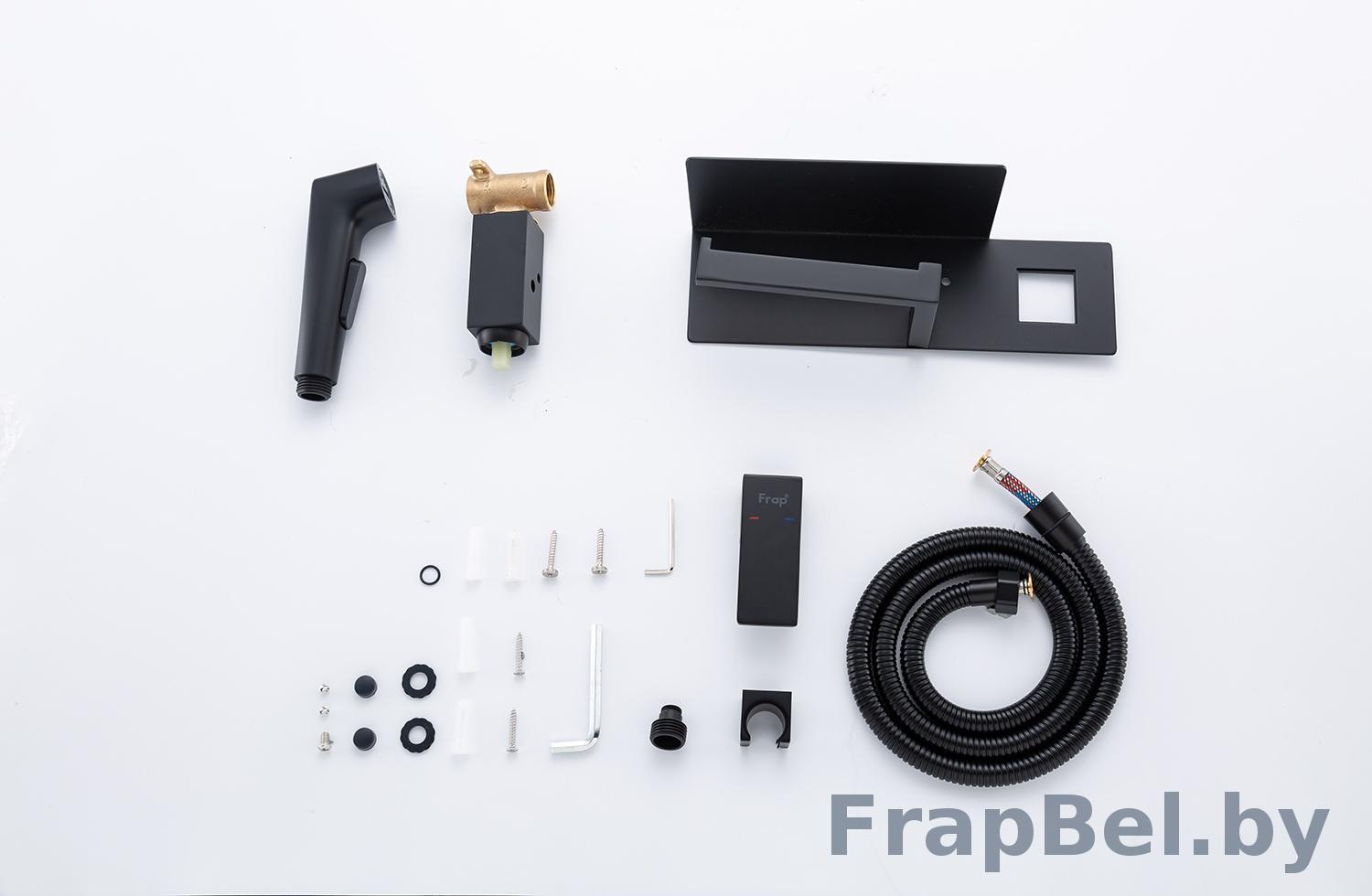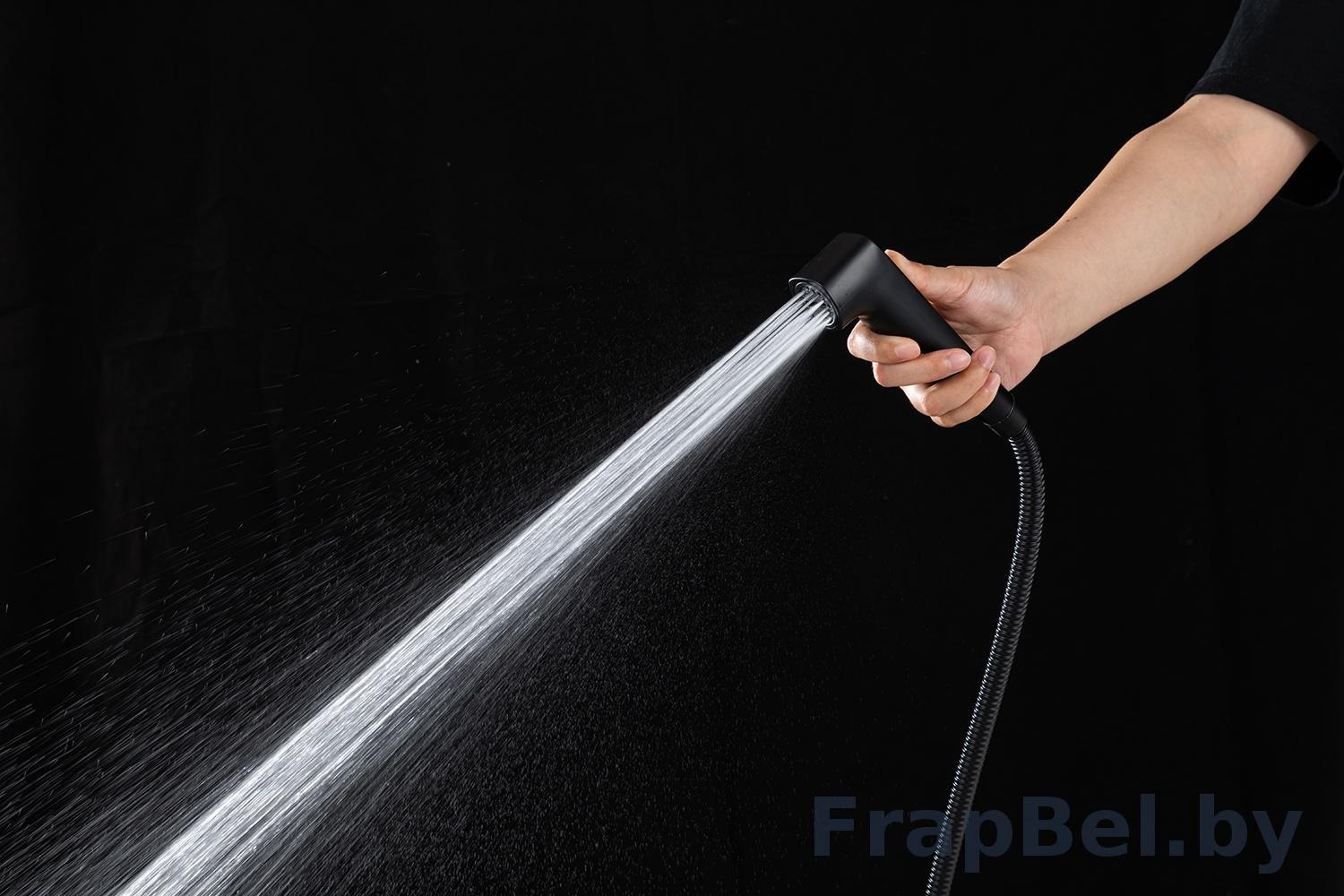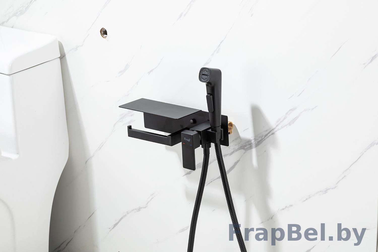 Смеситель гигиенический встраиваемый с полкой и бумагодержателем Frap F2076-6. Чёрный, изготовлен из латуни.
