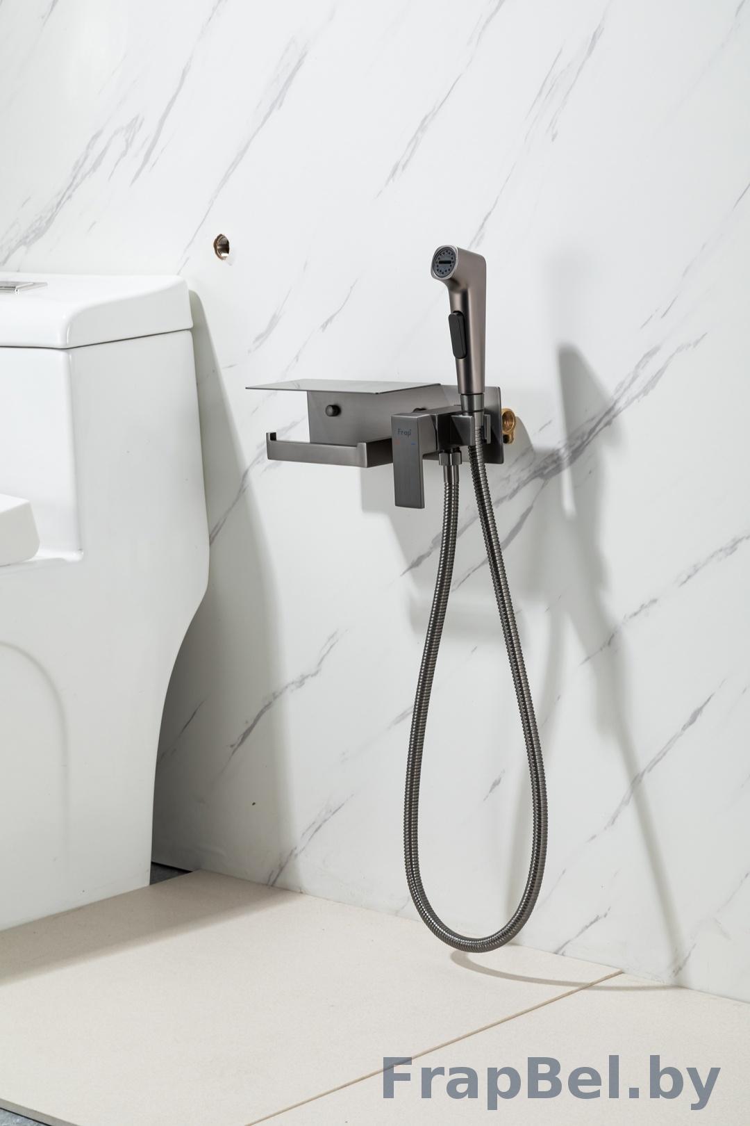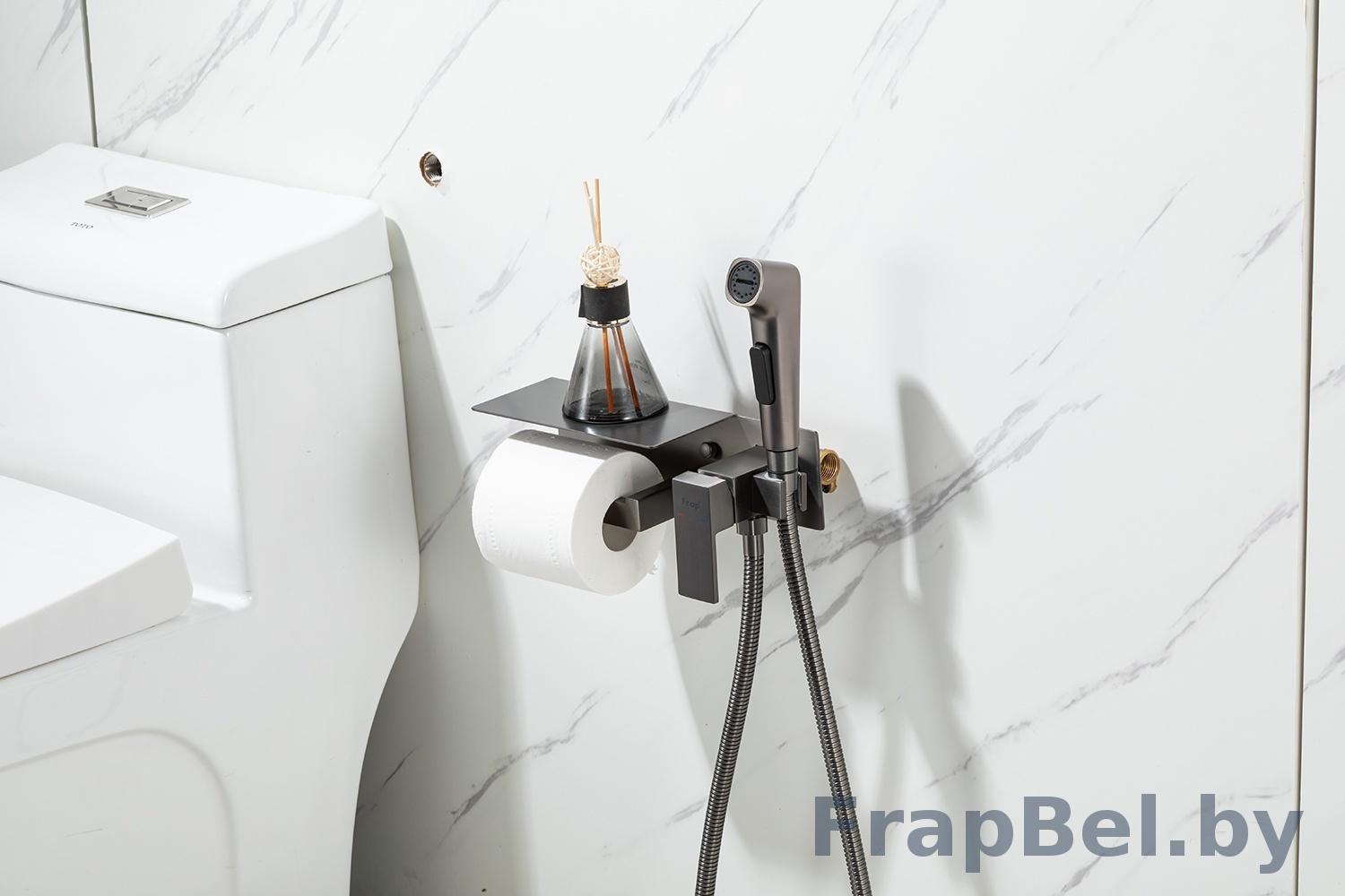 Смеситель гигиенический встраиваемый с полкой и бумагодержателем Frap F2076-9.